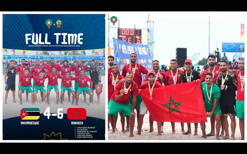 La sélection marocaine de beach soccer a occupé la troisième place de la Coupe d’Afrique des Nations (CAN), en battant le Mozambique (pays hôte) sur le score de 6 buts à 4, à Vilankulu.