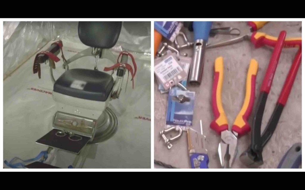 Ces chambres insonorisées étaient équipées de divers instruments de torture, comme des chaînes, des câbles et des outils de tortion.
